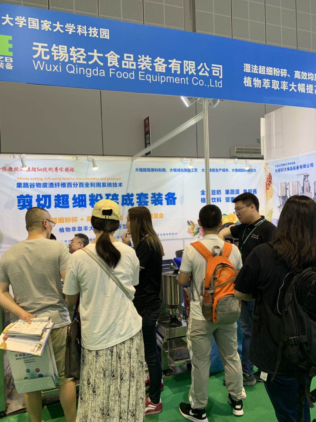 無(wú)錫輕大食品裝備有限公司已經(jīng)連續(xù)幾年參加此次會(huì)議,我們團(tuán)隊(duì)是專(zhuān)門(mén)研究濕法超細(xì)制漿系統(tǒng)技術(shù),該技術(shù)是在不斷提升與完善的過(guò)程中。這次展會(huì)改在了國(guó)家會(huì)展中心舉行,有了新場(chǎng)地和新氣象,我們分了兩個(gè)展臺(tái)共同迎接國(guó)內(nèi)外嘉賓的來(lái)訪,我們江大張團(tuán)隊(duì)研發(fā)的產(chǎn)品也得到各方認(rèn)可和支持。同期參加的還有無(wú)錫贊匠生物科技有限公司、無(wú)錫新禾創(chuàng)工食品科技有限公司、無(wú)錫素元生物科技有限公司。此次展會(huì)完美收官,期待2020再此與您相遇~!